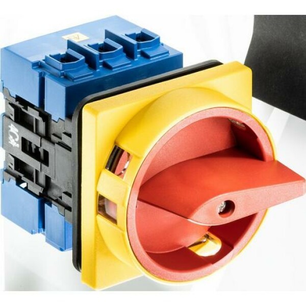 Hauptschalter rot/gelb, 3-polig, 4-Lochbefestigung 64x64, Ith: 63 A, P: 22 kW(AC-23,400V), 25 mm²
