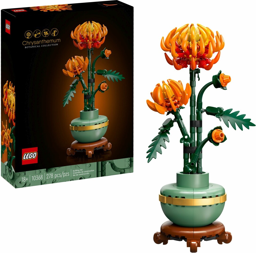 Die LEGO Botanicals Chrysantheme (10368) aus diesem Bauset für Erwachsene lässt dich wunderbar abschalten. Die Chrysantheme ist ein beliebtes Motiv in traditionellen chinesischen Kunstwerken und symbolisiert im klassischen Quartett der Vier Edlen den Herbst. Freu dich auf ein achtsames Bauprojekt. Die zeitlose Blumendeko für Wohnzimmer und Büro ist auch ein perfektes Geschenk zu jedem Anlass. Diese detailgetreue Nachbildung und Blumen-Set mit beweglichen Blättern und Blütenblättern stellt die orange Blume knospend, blühend und in voller Blüte dar. Die Spielzeug-Pflanze steht in einem pastellgrünen, mit goldenem Band verzierten Blumentopf auf einem Ständer in Holzoptik. Diess Blumen-Spielset lässt sich leicht zu einem eleganten Hingucker zusammenstecken und neben anderen separat erhältlichen Modellen aus der LEGO Botanik Kollektion ausstellen. Die inspirierende Kollektion der kreativen LEGO Bausets für Erwachsene bietet dir Raum zum Entspannen. Eine digitale Version der Bauanleitung zu diesem Bauspielzeug ist außerdem in der LEGO Builder App verfügbar. Mit Blumentopf und Ständer ist die Chrysantheme 26 cm hoch, 10 cm breit und 9 cm tief. Enthält 278 Teile.