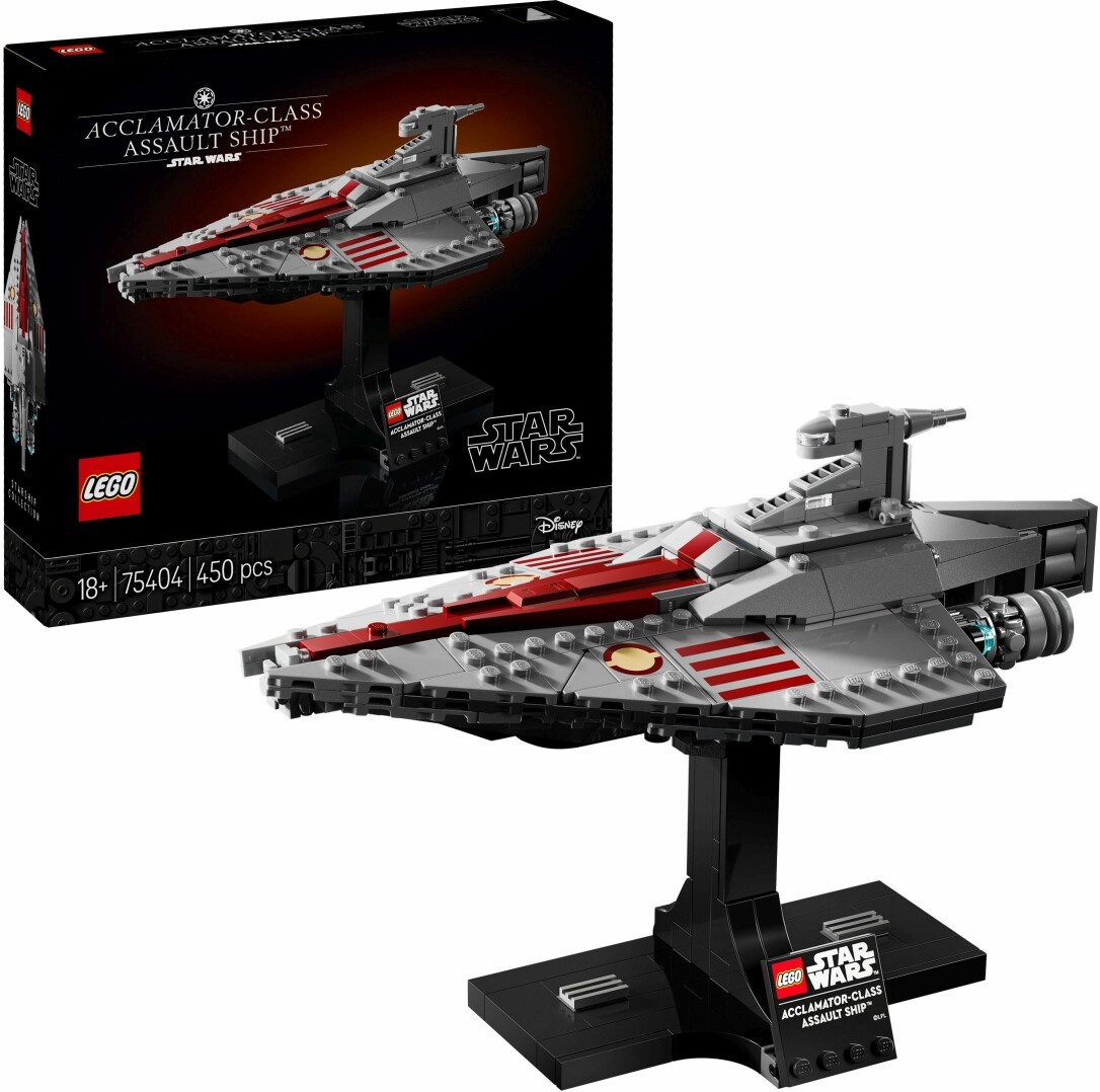 Baue das erste LEGO Star Wars Modell eines Assault Ships der Acclamator-Klasse (75404), um dich in die dramatische Schlacht von Geonosis versetzen zu lassen. Dieses Star Wars Sternenschiff zum Sammeln, Bauen und Ausstellen ist dem Original aus Star Wars: Angriff der Klonkrieger detailgetreu nachempfunden. Freu dich auf ein ebenso komplexes wie lohnendes Bauprojekt und stell das fertige Modell dann auf dem Ständer aus, den ein Namensschild ziert. Das faszinierende Bauset aus der Sternenschiff Kollektion mit Modellen mittleren Maßstabs ist eine tolle Belohnung für dich selbst oder ein kreatives Star Wars Geschenk für alle erwachsenen Fans und Sammler von Star Wars Modellbausätzen. Die LEGO Builder App lässt dich das Optimum aus diesem Sternenschiff Modell für Erwachsene herausholen. In der App kannst du beim Bauen eine 3D-Ansicht deines Fantasy Sets vergrößern und drehen, deinen Baufortschritt verfolgen und all deine Bausets am selben Ort speichern. Der baubare Sternenjäger ist 15 cm hoch, 23 cm lang und 13 cm breit. Enthält 450 Teile.