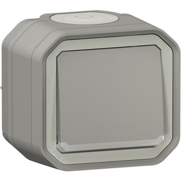 Plexo New Feuchtraum-Aufputz Taster beleuchtet 10 A, Steckklemmen (SL), IP 55, IK 08, in der Farbe: Grau.