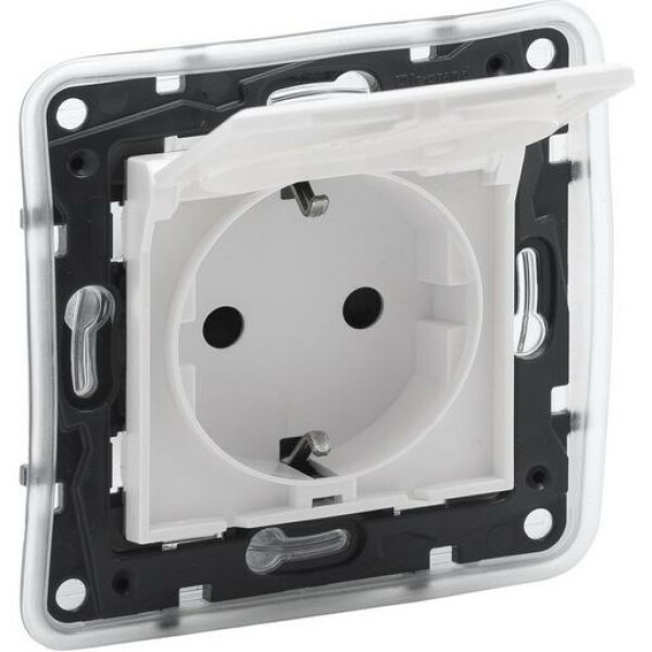 Die Niloe Step Einsätze sind für Spreizkrallen- und Schraubbefestigung geeignet und werden mit roter Staubschutzabdeckung geliefert. Verwendbar für den Anschluss von starren und flexiblen Leitern mittels Steck- (SL) oder Schraubklemmen (SK). Zu komplettieren mit Abdeckrahmen von Niloe Step. Niloe Step IP 44 Schutzkontakt-Steckdose 16A mit Klappdeckel, inkl. Abdeckung, mit erhöhtem Berührungsschutz und schraublosen Anschlussklemmen, Farbe: Ultraweiß.