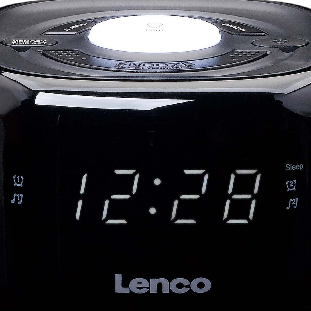he Lenco CR-12BK is a compact clock radio with a 0.6 inch LED screen. As you get out of bed bright and early ready for the day, you can enjoy crystal-clear and inspiring music without any interference. Do you feel like listening to jazz, or rock music, or would you prefer to listen to the latest news updates? You can choose from 20 FM stations.