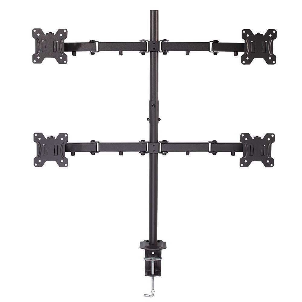 The Lindy Quad Display Bracket with pole and desk clamp is a high quality, all in one solution for mounting 4 monitor or displays to a standard office desk or table, perfect for premium PC installations, gaming setups, or broadcast studios. With a robust design and flexible metal arm, the display can be easily manoeuvred to ensure the optimum viewing angle.
