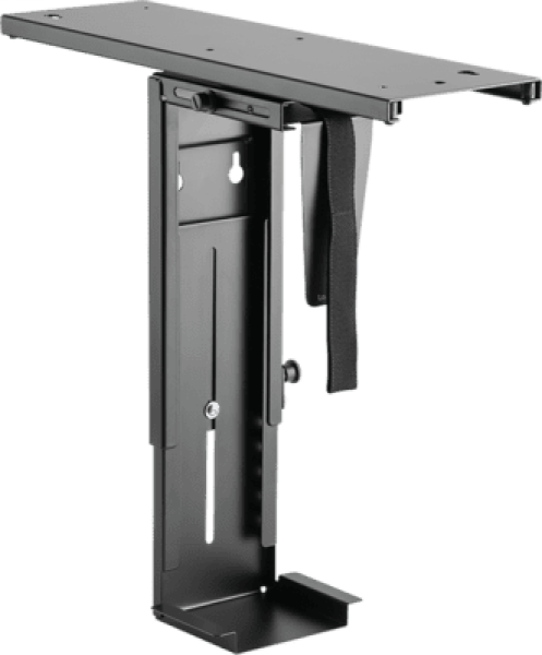 LogiLink EO0004. Type: Desk-mounted CPU holder, Maximum weight capacity: 10 kg, Product colour: Black. Computer width supported (vertical) (min): 8.8 cm, Computer width supported (vertical) (max): 20.3 cm, Computer height supported (vertical) (min): 30 cm. Width: 147 mm, Depth: 485 mm, Height (max): 59.6 cm