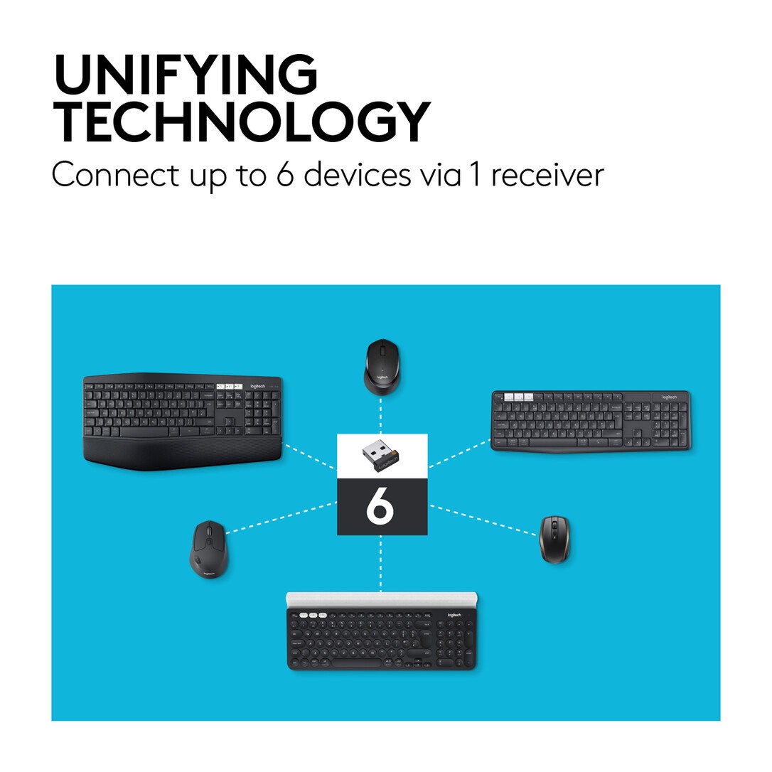 Built for endurance, versatility, and comfort, the M720 Triathlon Mouse helps you succeed in a multi-device world. You'll be powering through tasks thanks to the Easy-Switch technology that lets you switch seamlessly between 3 computers. You'll fly through documents and web pages using the hyper-fast scroll wheel, and hardly spare a thought to changing batteries thanks to 24 months of power on one AA battery. The large-sized sculpted shape fits comfortably under your hand, and the keys are designed to withstand up to 10 million clicks. You can connect to Windows® and Mac via the tiny Unifying™ receiver or via Bluetooth® Smart wireless technology.