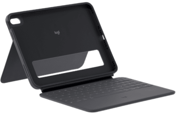 Logitech Rugged Folio. Tastaturaufbau: QWERTZ, Tastatursprache: Deutsch, Tastenabstand: 1,8 cm. Markenkompatibilität: Apple, Kompatibilität: iPad (10th gen) Model: A2696, A2757, A2777, Produktfarbe: Graphit. Übertragungstechnik: Andocken, Geräteschnittstelle: Smart Connector. Energiequelle: Dock. Unterstützte mobile Betriebssysteme: iPadOS