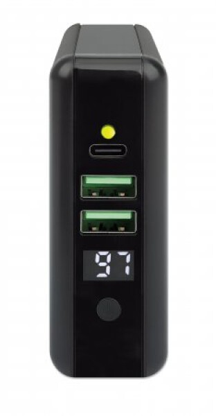 The Manhattan 4-in-1 Travel Wall Charger and Powerbank 8,000 mAh provides you with incredibly useful functions on one device. Use it as a USB wall charger to charge smartphones, tablets, eReaders, headphones and more from two USB-A and one USB-C port with per-port power up to 5 V / 2.4 A. You can also skip the wires altogether and charge compatible mobile devices on the 5 W wireless charging pad. For even more convenience, this all-rounder lets you charge on the go without plugging into a socket since it's also an 8,000 mAh powerbank. Its convenient digital number display lets you check the remaining battery at any time. Recharge the powerbank directly via AC on a power outlet or through its USB-C port. Finally, if you're an international traveler, you'll love its foldable US and swappable UK and EU plugs that let you charge devices in the many regions that offer these outlet types.