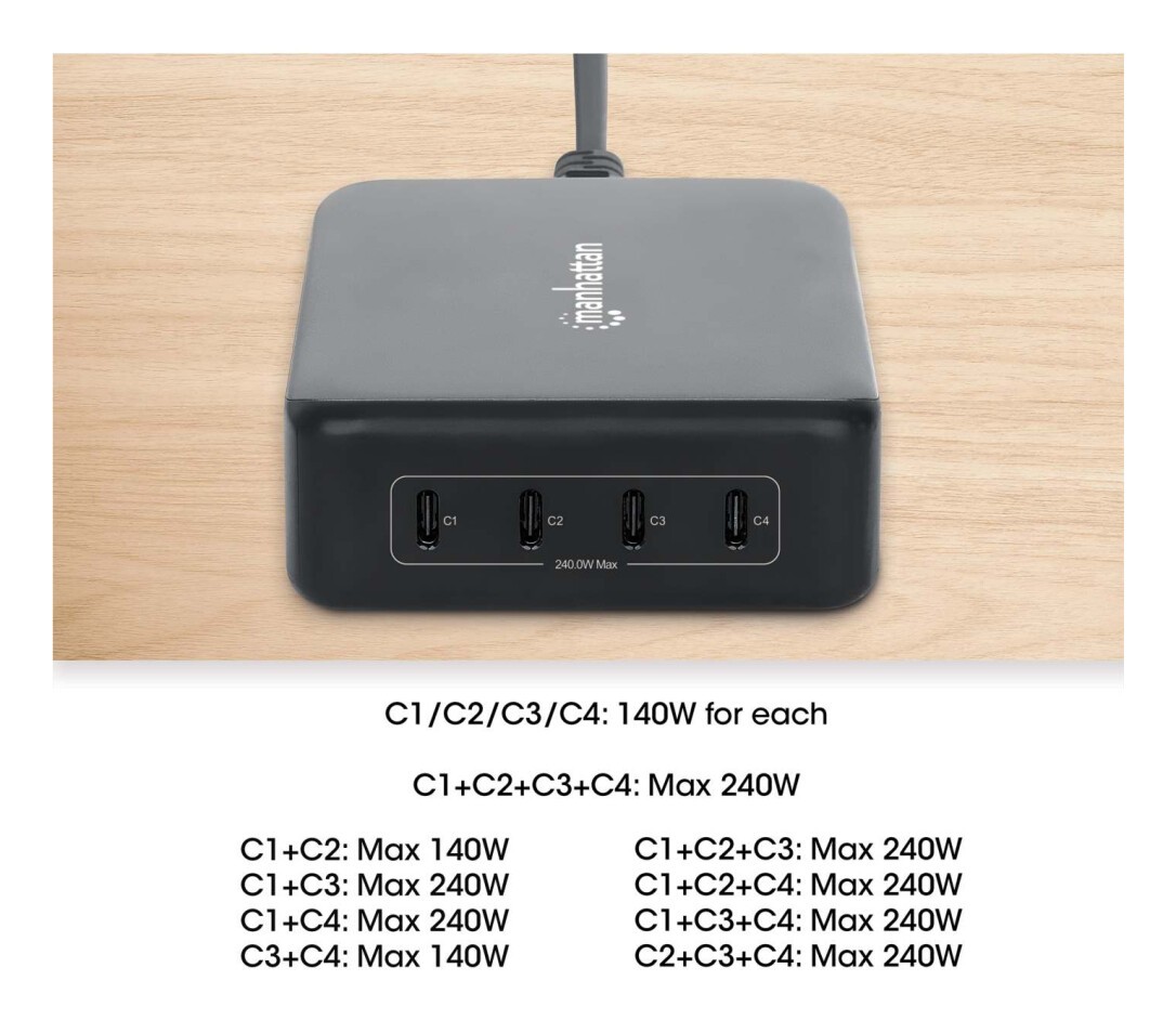 MANHATTAN 4-Port GaN USB Power Delivery-Ladestation 240W (102667)