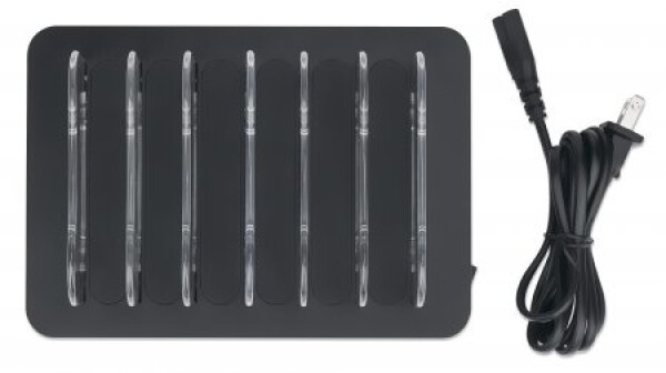 Manhattan Charging Station - 6x USB-A Ports - Outputs: 6x 2.4A - Smart IC - LED Indicator Lights - Black (Power Cable: Euro 2-pin plug to C7 figure-of-8 connector) - Box - Black - CE FCC RoHS WEEE ETL - 100 - 240 V - 1 A - 155 mm - 125 mm