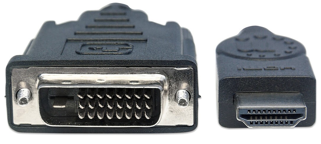 Manhattan HDMI to DVI Cables help deliver the brightest, most accurate colours and sharpest detail when connecting high-definition televisions, LCD and plasma displays, digital satellite receivers, DVD players, digital projectors and other DVI- or HDMI-equipped display devices. Manhattan HDMI to DVI Cables are engineered and constructed of quality materials to deliver dependable transmissions in digital video applications. Full foil and braided shielding, moulded boots with strain relief, protective PVC jackets and gold-plated connections help provide maximum conductivity and clear, crisp signal transmissions with reduced distortion.