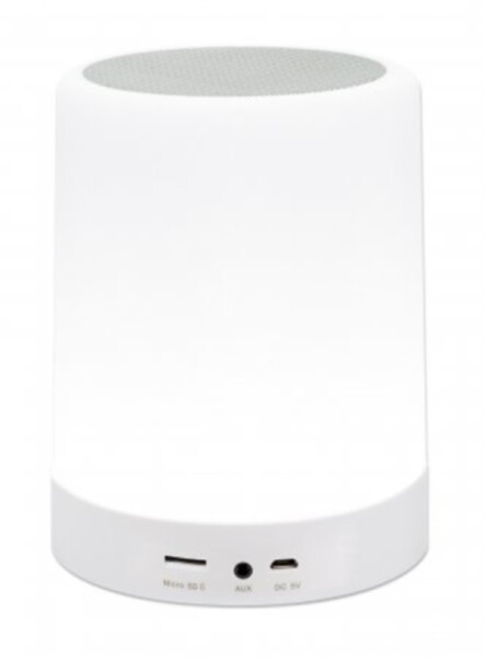 Manhattan Sound Science LED-Bluetooth-Lautsprecher, Kabellose Musikwiedergabe, LED-Licht mit drei Helligkeitsstufen und sechs Farben, integrierte Bedienelemente, MicroSD-Kartenslot, 3,5-mm-Klinkenbuchse. Magnettyp: Neodym, Treiberdurchmesser: 4 cm. RMS-Leistung: 3 W, Frequenzbereich: 150 - 18000 Hz. Übertragungstechnik: Verkabelt & Kabellos, Bluetooth-Profile: A2DP, AVRCP, HFP, HSP, Bluethooth-Reichweite: 10 m. Produkttyp: Tragbarer Mono-Lautsprecher, Produktfarbe: Weiß, Produktdesign: Zylinder. Empfohlene Nutzung: Universal, Kompatible Speicherkarten: MicroSD (TransFlash), Max. Speicherkartengröße: 32 GB