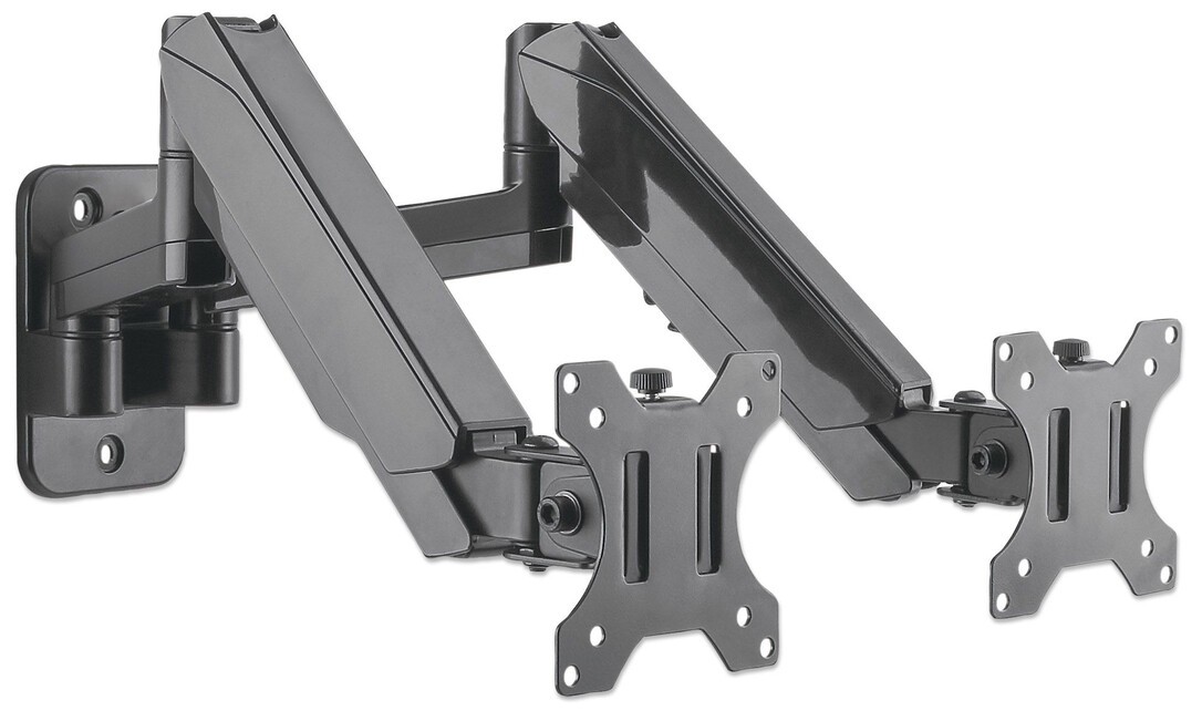 Manhattan TV & Monitor Mount - Wall - Full Motion (Gas Spring) - 2 screens - Screen Sizes: 17-32" - Black - Dual Screen - VESA 75x75 to 100x100mm - Max 8kg (each) - Tilt & Swivel with 3 Pivots - Lifetime Warranty - 8 kg - 43.2 cm (17") - 81.3 cm (32") - 7