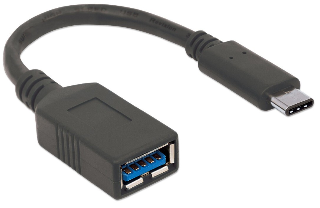 Manhattan USB-C to USB-A Cable - 15cm - Male to Female - Black - 5 Gbps (USB 3.2 Gen1 aka USB 3.0) - 3A (fast charging) - IF-Certified - Equivalent to Startech USB31CAADP - SuperSpeed USB - Lifetime Warranty - Polybag - 0.15 m - USB C - USB A - USB 3.2 Ge