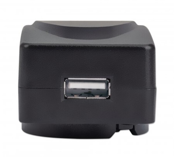 Manhattan USB-Ladegerät und Reiseadapter, Geeignet für Europa, UK, USA und Australien, ein USB-A-Ladeport lädt mit bis zu 1 A, schwarz. Aufladetyp: Drinnen, Energiequelle: AC, Aufladekompatibilität: Smartphone. Eingangsspannung: 100 - 240 V, Maximale Ausgangsspannung: 5 V. Anzahl USB 2.0 Anschlüsse: 1. Produktfarbe: Schwarz