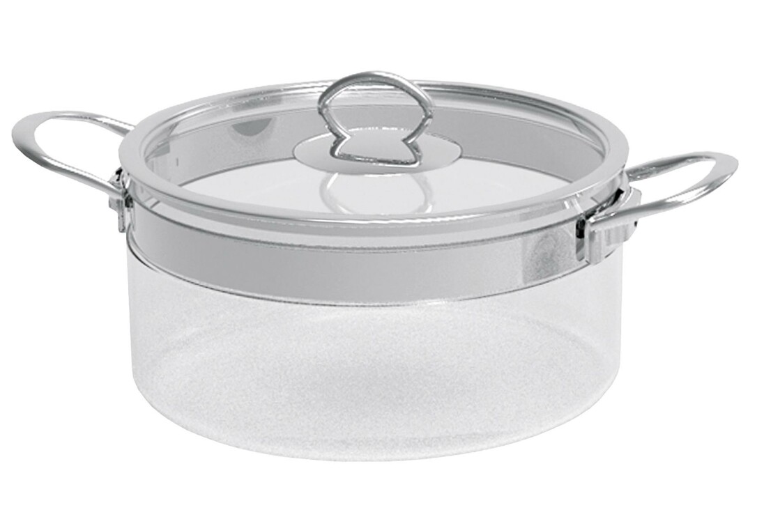 Schmortopf aus transparentem Glas und Edelstahl. Langlebiges Borosilikatglas und robuster Edelstahl. Hitzefest bis 220 °C. Mit zusätzlicher Induktionsadapterplatte auch für Gas- und Induktionsherde geeignet. Spülmaschinengeeignet.