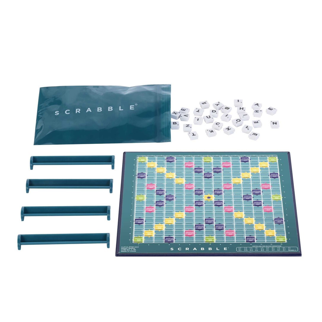 das entscheiden allein die Spieler Die Teile bleiben dort, wo man sie hinlegt Ein Gitter hält die Buchstabensteine in ihrer Position Enthält 1 Spielbrett, 4 Buchstabenbänkchen, 100 Buchstabensteine, 1 Buchstabenbeutel und Spielanleitung