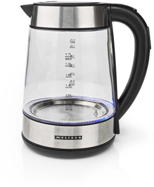 MELISSA Digitaler Wasserkocher / 1,7 l / 2200 W / Glas / 50/70/80/90/100 °C Voreinstellungen / 360° Pirouettenboden / Verdecktes Heizelement / Strix® Regler / Warmhaltefunktion / Trockengehschutz