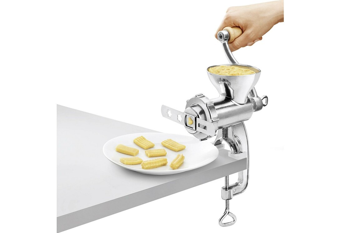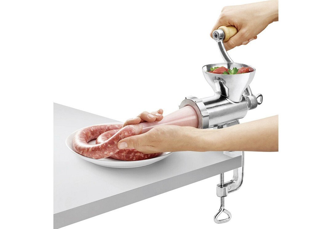 | Lieferumfang | 5-teilig, Spritzgebäckaufsatz, Wurstfülltrichter und Stößel, mit Holzkurbel und Tischbefestigung |