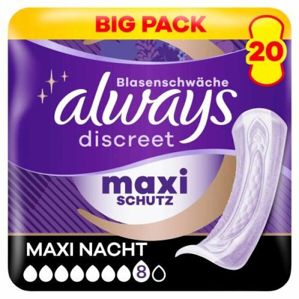 Multipack 2x Always Discreet Inkontinenz-Einlagen Maxi Nacht Für Frauen, Saugstärke 8, 20 Stück