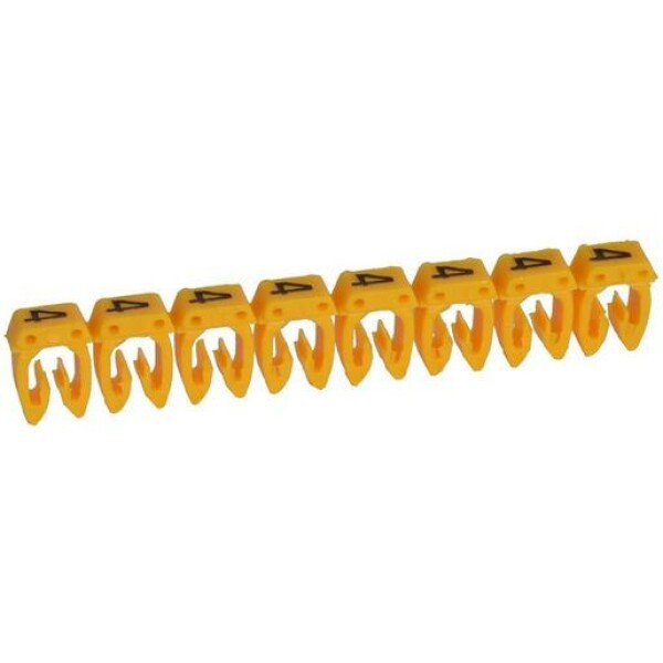 Kennzeichnungssystem CAB 3, für Leiterquerschnitt 0,5 bis 1,5 mm², Ziffer: 4 (Gelb), Kennzeichnung von Leitern mittels Ziffern, Buchstaben und Symbolen, zum Aufklipsen auf Leiter.