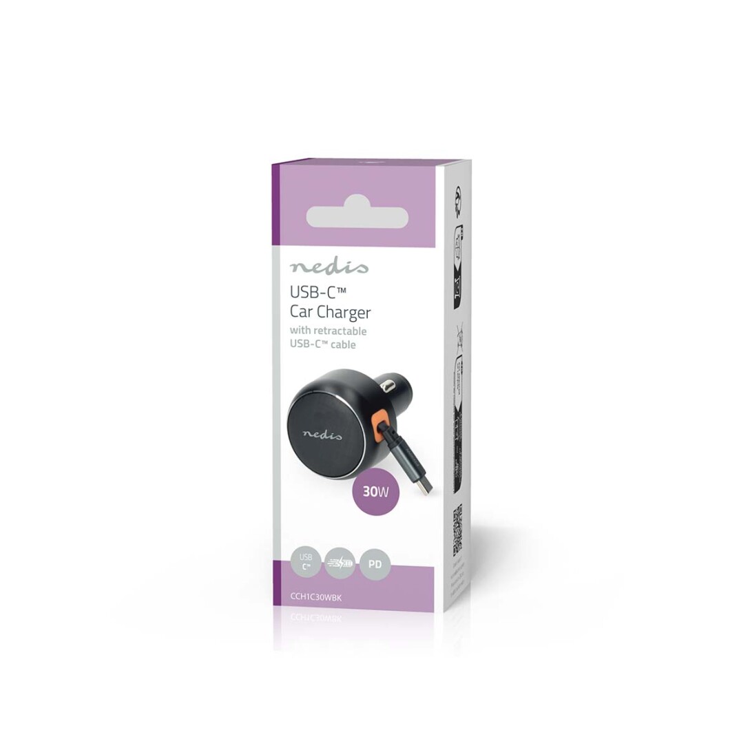 Mit dem Nedis Autoladegerät mit einziehbarem USB-C™-Kabel bleibt Ihr Gerät geladen und Ihr Auto frei von Unordnung. Mit einer Ausgangsleistung von bis zu 30 W bietet dieses Ladegerät einen schnellen und effizienten Ladevorgang für eine Vielzahl von USB-C™-Smartphones und Tablets, einschließlich der neuesten Apple- und Android-Geräte.Ausgestattet mit einem integrierten einziehbaren USB-C™-Kabel, das bis zu 70 cm lang ist, bietet es flexibles Laden ohne lästiges Kabelgewirr. Durch einfaches Ziehen lässt sich das Kabel sauber in das Ladegerät einziehen - ideal, um den Innenraum eines Autos sauber und aufgeräumt zu halten.Dieses Ladegerät ist mit Power Delivery (PD) und PPS (Programmable Power Supply) Technologie ausgestattet und passt sich intelligent an den Strombedarf Ihres Geräts an, um ein schnelleres und effizienteres Aufladen zu gewährleisten und gleichzeitig den Akku langfristig zu schützen.Dank der automatischen Geräteerkennung wird Ihr angeschlossenes Telefon oder Tablet immer optimal geladen, während das integrierte Smart Protection System Schutz vor Überhitzung, Überspannung und Kurzschluss bietet - für eine sichere, sorgenfreie Leistung zu jeder Zeit.Dieses Ladegerät ist sowohl mit 12- als auch mit 24-Volt-Steckdosen kompatibel und eignet sich für den Einsatz in Autos, Lieferwagen und Lastwagen. Damit ist es eine praktische Lösung für Alltagsfahrer und Profis gleichermaßen.