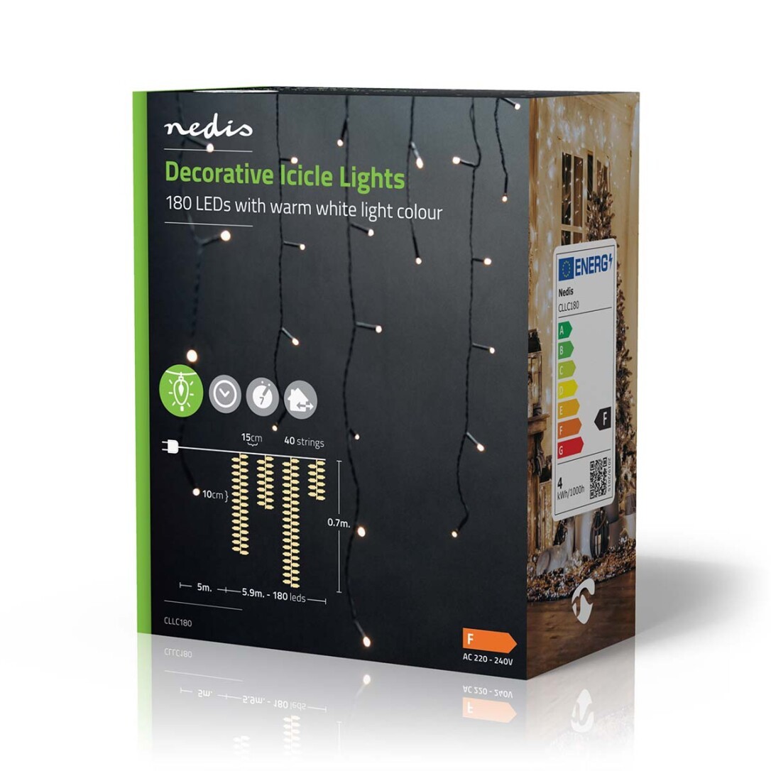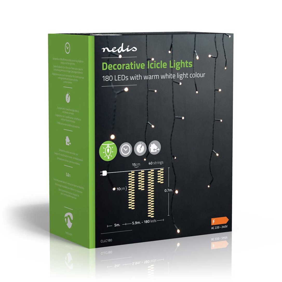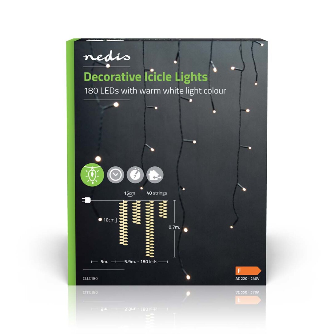 Nedis Dekorative Eiszapfenlichter| 180 LED's| Warmweiss| 5.90 m| Lichteffekte 7|