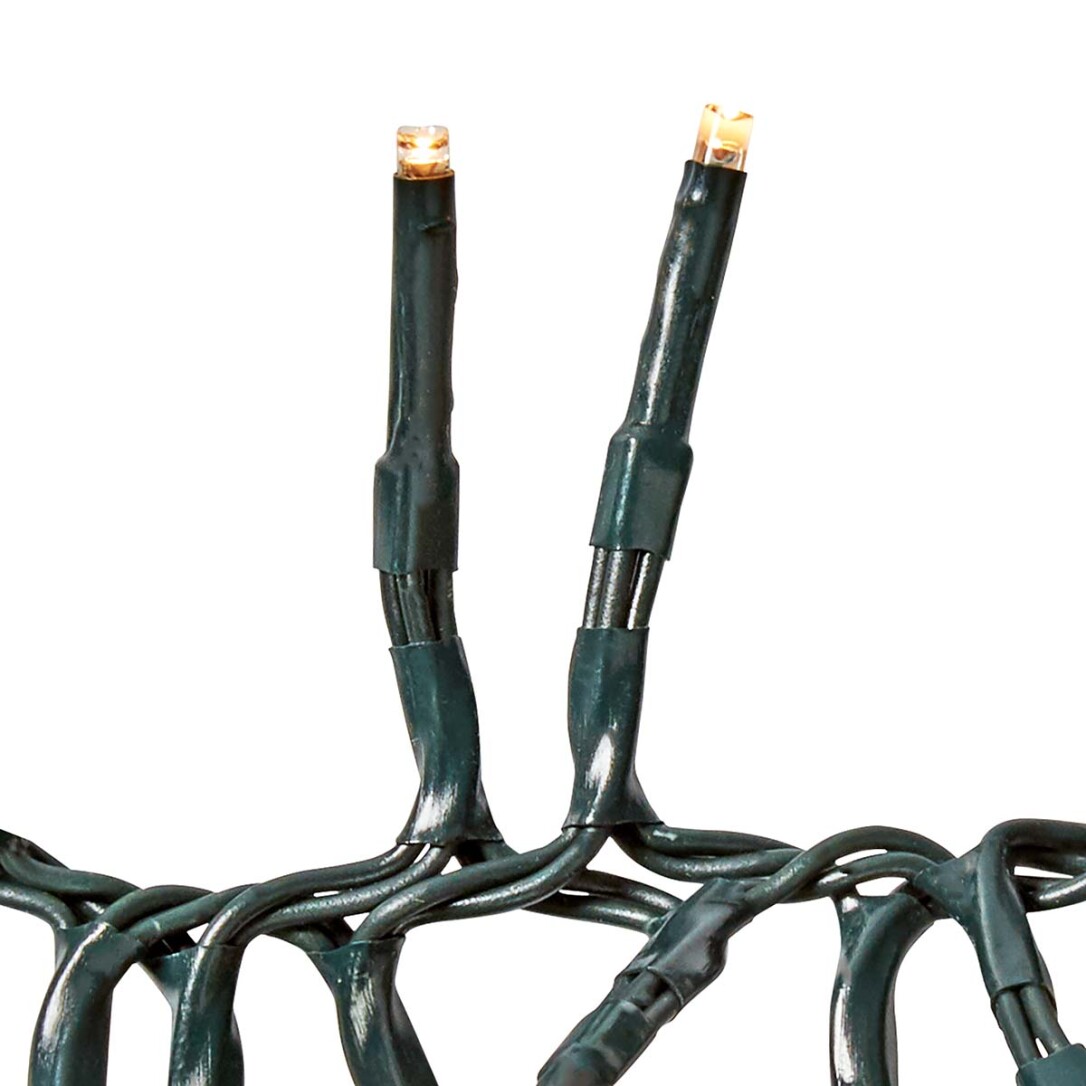 Die grüne Farbe des Kabels fügt sich dezent ein und passt zu jedem Baum oder Hintergrund, ohne die Optik zu stören. Die Lichterkette umfasst insgesamt 768 LED-Leuchten, die in Abständen von 0,7 Zentimetern voneinander angebracht sind. Mit einer Gesamtlänge von 8,6 Metern wird Ihnen diese Lichterkette nie zu kurz sein. Sehr praktisch, wenn Ihre Steckdose ein wenig weiter entfernt ist. Die Lichterkette kann sowohl im Innen- als auch im Außenbereich verwendet werden.