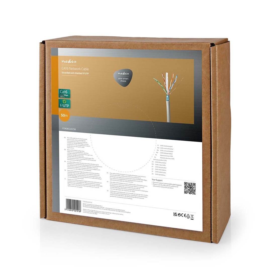Nedis Network Cable Roll / CAT6 / Stranded / F/UTP / CCA / 50.00 m / Indoor / Round / PVC / Grey / Gift Box