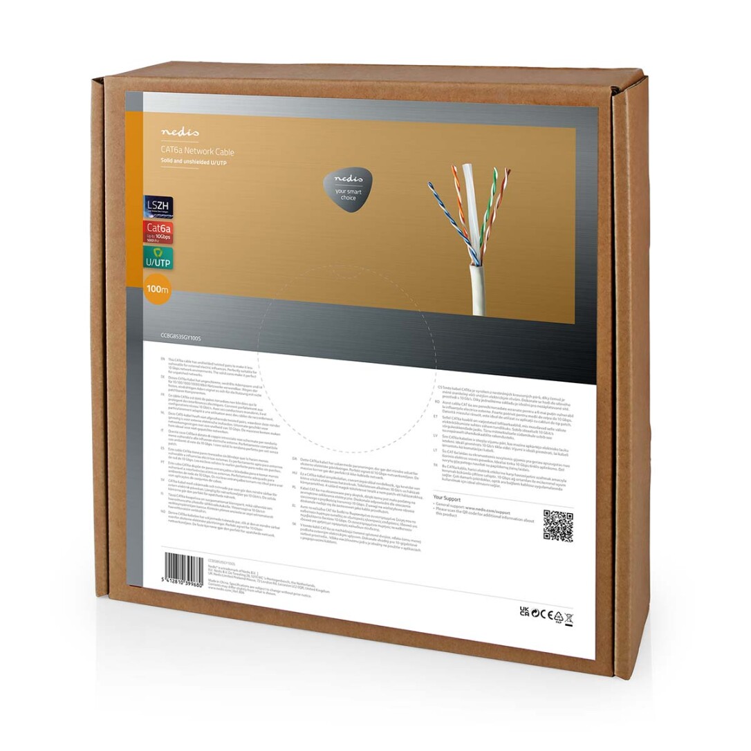 Nedis Netzwerk-Kabel Rollen / CAT6a / Solid / U/UTP / Kupfer / 100 m / Innen / Rund / LSZH / Grau / Kartonverpackung