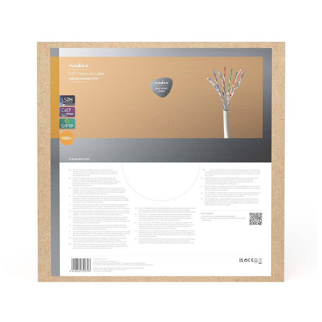 Nedis Netzwerk-Kabel Rollen / CAT7 / Solid / S/FTP / Kupfer / 100 m / Innen / Rund / LSZH / Grau / Kartonverpackung