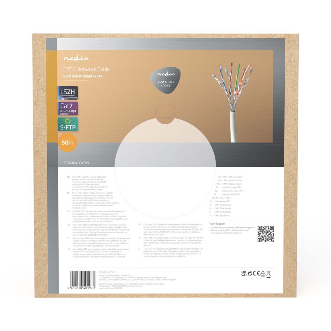 Nedis Netzwerk-Kabel Rollen / CAT7 / Solid / S/FTP / Kupfer / 50.0 m / Innen / Rund / LSZH / Grau / Pull Box - ausziehbar