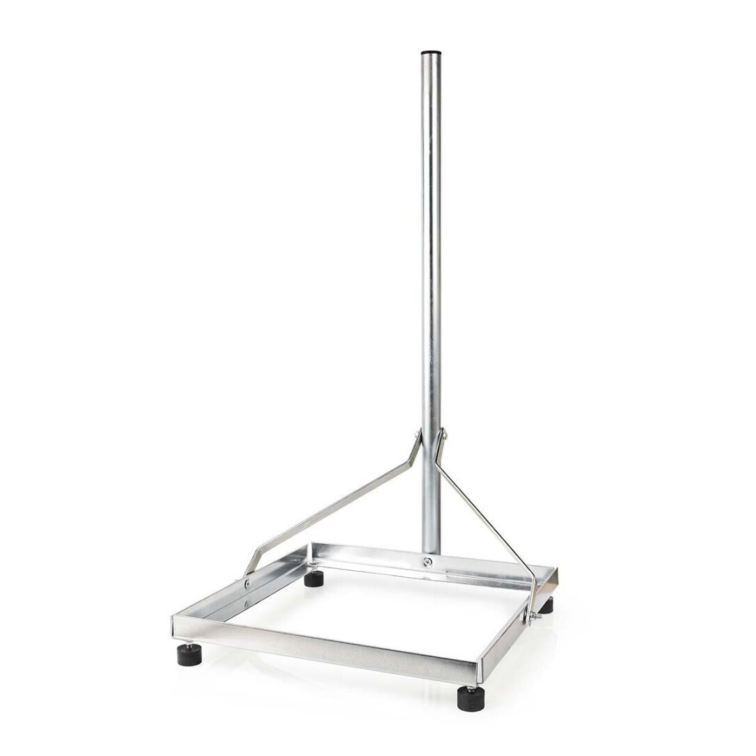 Balkonständer* aus galvanisiertem Stahl mit einer Länge von 100 cm zur Stabilisierung und Platzierung von Satellitenspiegeln. Der Ständer ist mit Schutzfüßen aus Gummi versehen und eignet sich somit neben Balkonen auch für Dachterrassen und Flachdächer. Darüber hinaus lassen sich die Standbeine individuell in der Höhe verstellen, um auch auf unebenem Untergrund eine optimale Ausrichtung zu garantieren. Der Balkonständer kann durch zwei 50 x 50 cm große Basisplatten stabilisiert werden (nicht enthalten).
