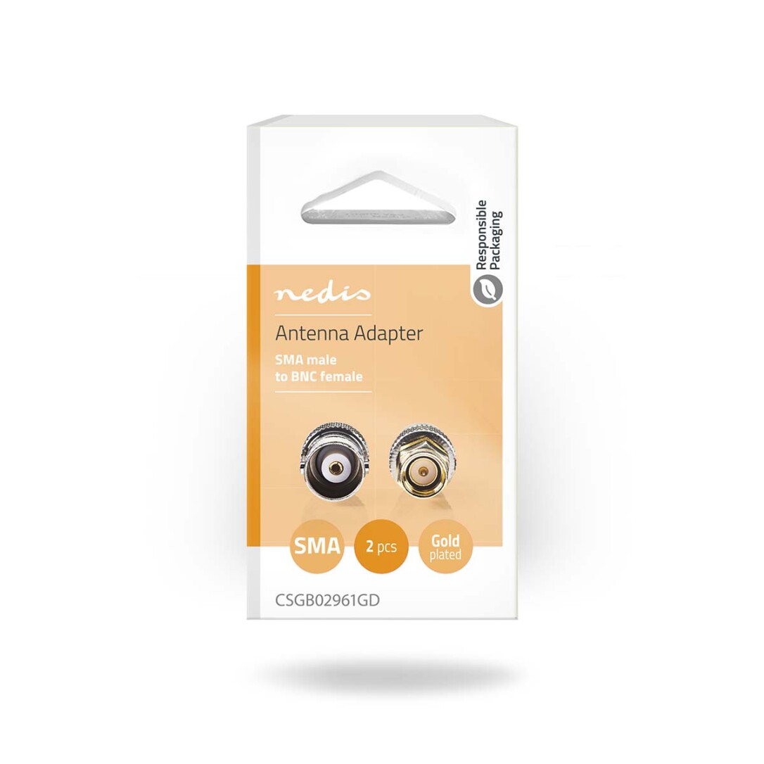 Nedis SMA Adapter / SMA-Stecker / BNC-Buchse / Vergoldet / 50 Ohm / Gerade / PVC / Gold / 2 Stück / Box