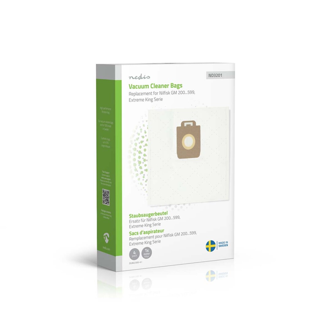 Nedis Staubsaugerbeutel / 4 Stück / Synthetik / Meist verkauft für: Nilfisk Extreme - King Series / Nilfisk GM 200 - 599 / Weiss