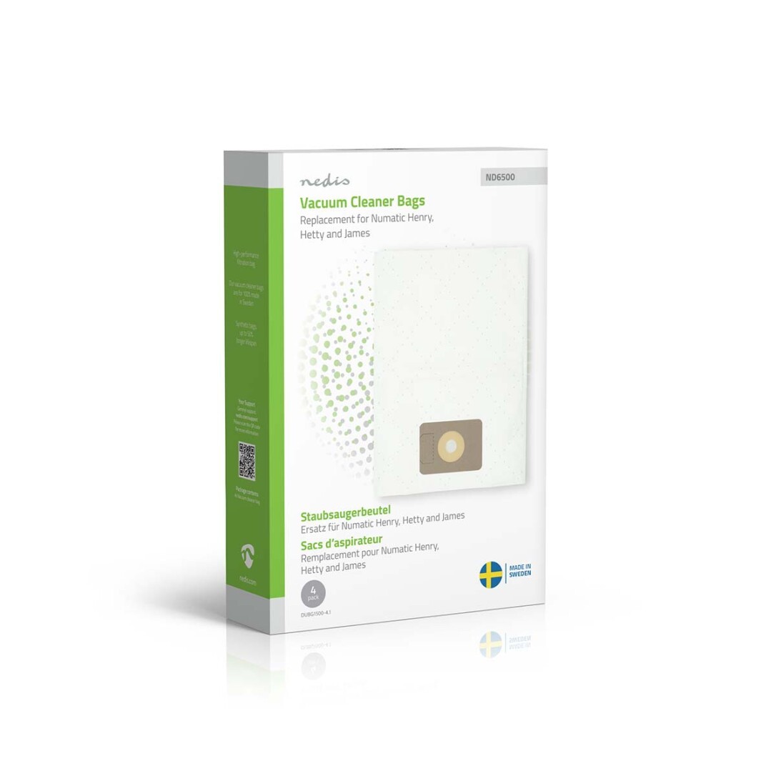 Nedis Staubsaugerbeutel / 4 Stück / Synthetik / Meist verkauft für: Numatic Henry / Hetty / James / Weiss