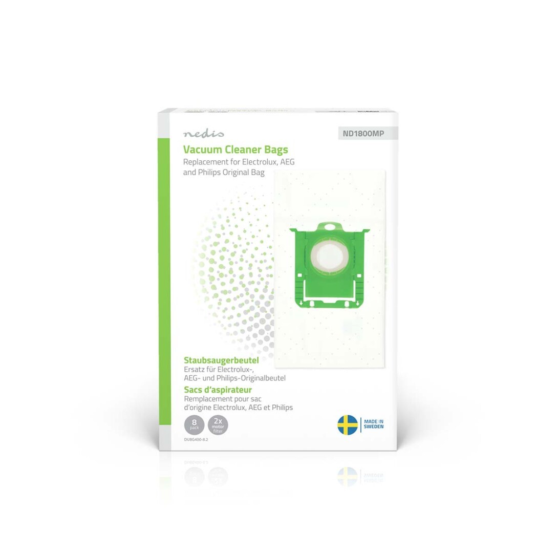 Nedis Staubsaugerbeutel / 8 Stück / Synthetik / Meist verkauft für: Replacement for Electrolux, AEG and Philips Original Bag / Weiss