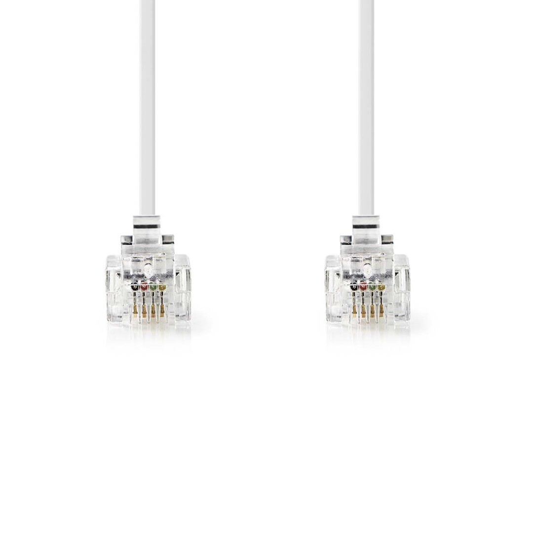 Nedis Telefonkabel / RJ11 Stecker / RJ11 Stecker / 10.0 m / Kabeldesign: Flach / Vergoldet / Kabeltyp: RJ11 / Weiss / Box