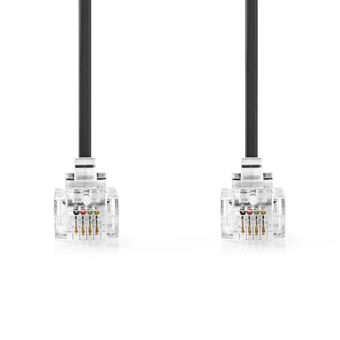 Nedis Telefonkabel / RJ11 Stecker / RJ11 Stecker / 5.00 m / Kabeldesign: Flach / Vergoldet / Kabeltyp: RJ11 / Schwarz / Label