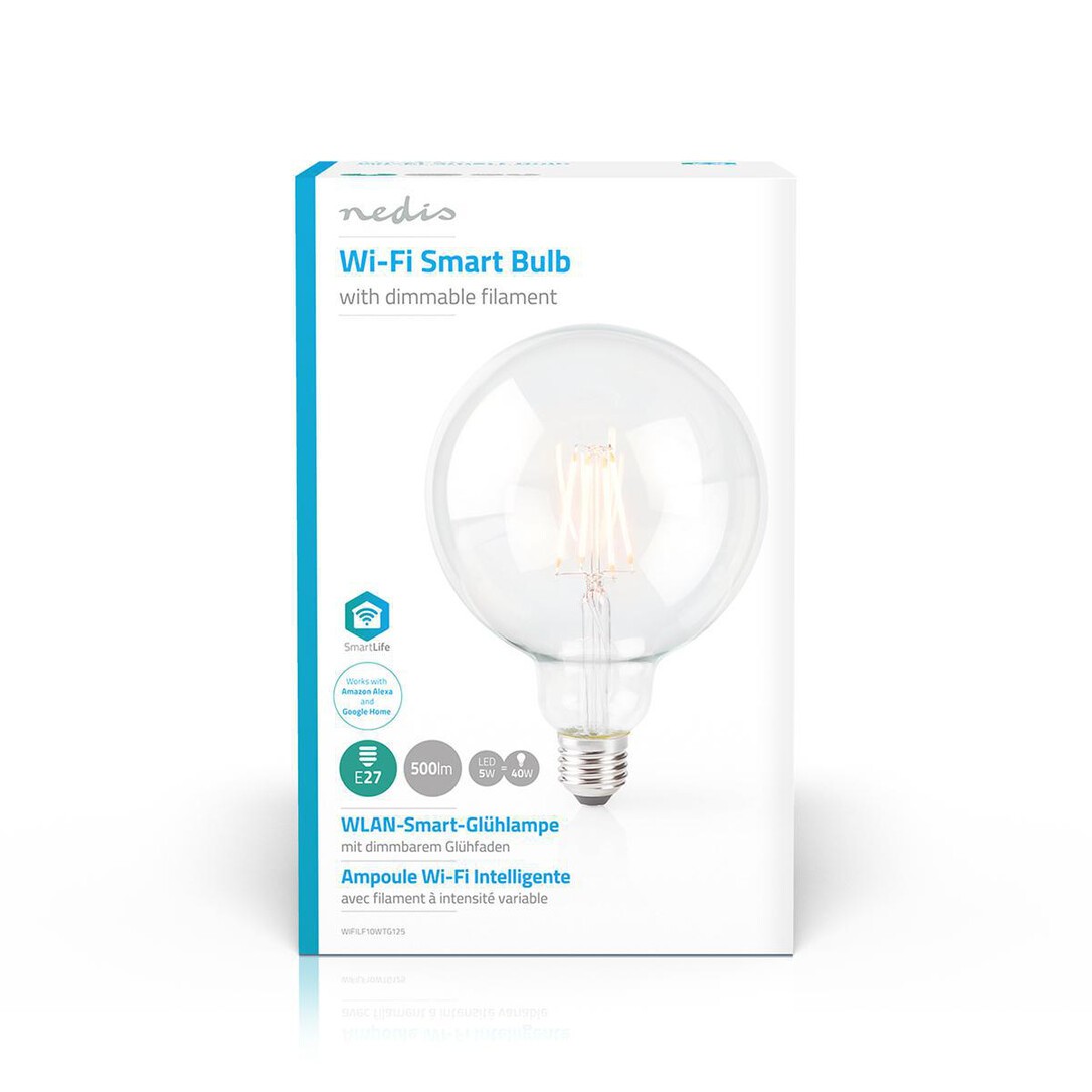 Combine modern day technology with classic looks with this smart filament bulb that connects directly to your wireless/Wi-Fi router to offer remote control as part of your home automation system. Easy to set upYou don’t need to be a technical genius or an electrician to control and automate your lighting remotely. All you actually need is your Wi-Fi router, our intuitive app and these Nedis® wireless smart bulbs. No extra kit and no connecting hubs: this is home automation made simple. Control the bulb’s brightnessConnect them up and you can now control the brightness by using your smartphone or tablet. And if you’re getting super smart you can even control them with your voice via Amazon Alexa or Google Home. Set up schedules and pair with other smart productsSet up time schedules for the bulb to be switched on or create ambient scenes in an instant by pairing this bulb to other products from the Nedis® SmartLife range. About Nedis® SmartLifeDiscover a wide and ever-expanding range of products – such as bulbs, switches, sockets, sensors, and cameras – that can all be controlled through an easy-to-use and intuitive app. With voice control features supported by Amazon Alexa and Google Home, and no need for anything more than your existing Wi-Fi network, this is the connected, smart home made simple.Whether you're looking for a single smart bulb or socket, or you want to automate your entire house, discover how accessible smart technology is today.