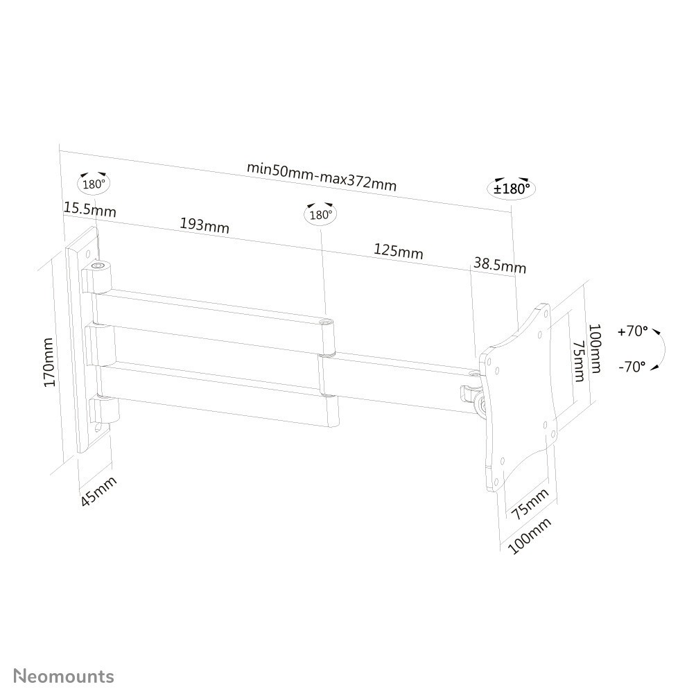 Neomounts by Newstars' tilt (20°) and swivel (180°) technology allows the mount to change to any viewing angle to fully benefit from the capabilities of the flat screen. The mount is easily depth adjustable from 4 to 36 centimetres.