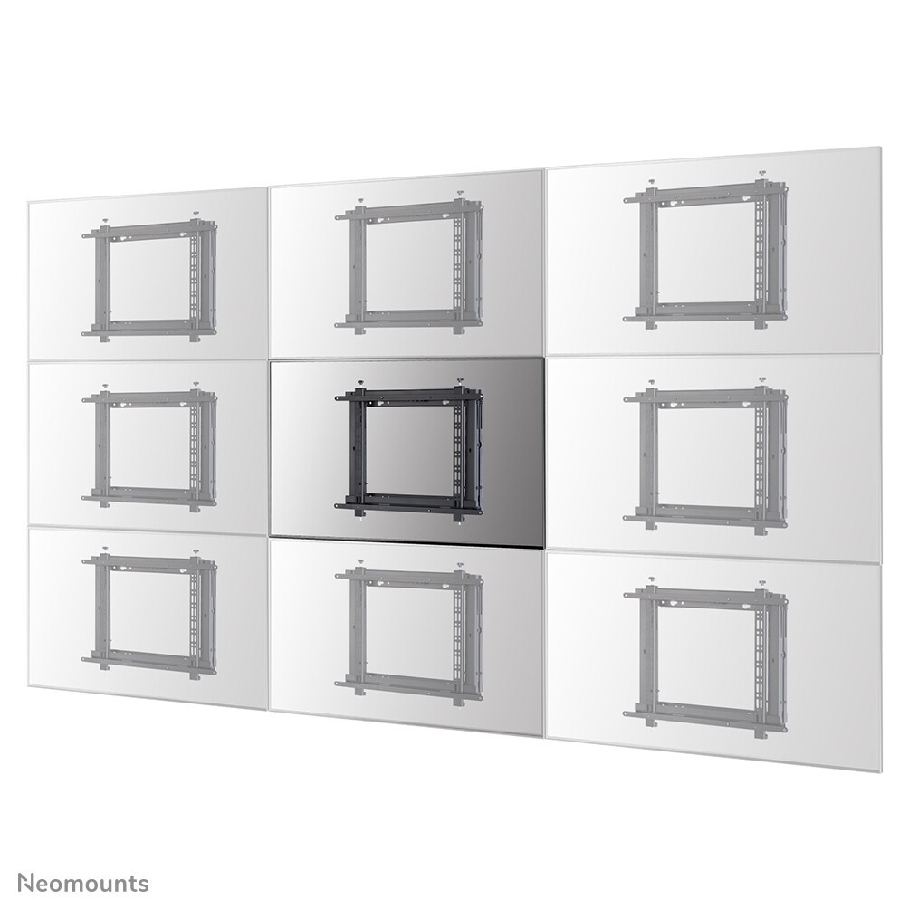 Neomounts Videowall-Wandhalterung. Höchstgewichtskapazität: 35 kg, Minimum Bildschirmgröße: 106,7 cm (42"), Maximale Bildschirmgröße: 177,8 cm (70"), Minimale VESA-Halterung: 200 x 200 mm, Maximale VESA-Halterung: 600 x 400 mm. Produktfarbe: Schwarz