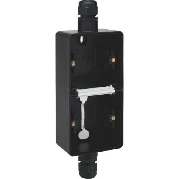 Diese vertikale Doppel-Aufputzdose mit je einer Kabeleinführung oben und unten inkl. M20-Kabelverschraubungen eignet sich für zwei Funktionen. Die gesamte Einheit ist spritzwassergeschützt und deshalb besonders geeignet für die Verwendung in feuchten Räumen und anspruchsvollen Umgebungen. Farbausführung: black.
