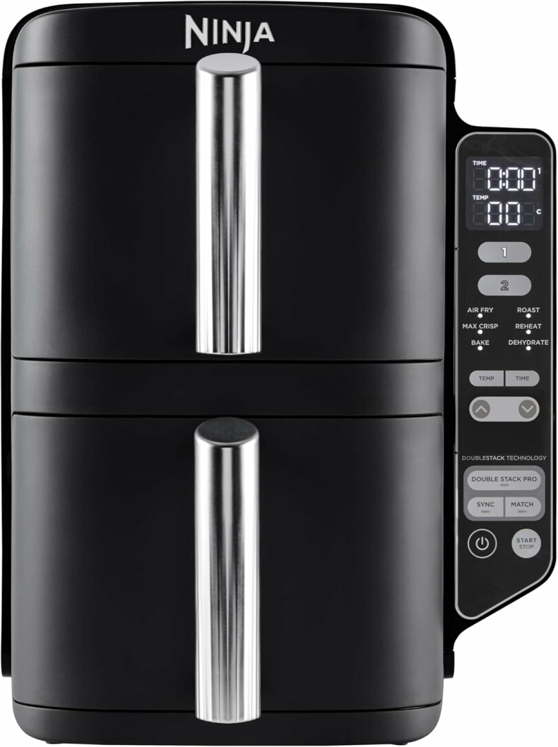 Sie wünschen sich eine größere Heißluftfritteuse in Ihrer Küche, haben aber nur wenig Platz auf der Arbeitsfläche? Wir präsentieren die Ninja Double Stack 2-Ebenen Heißluftfritteuse.