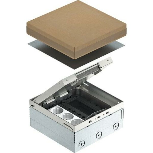 Quadratische Einbaueinheit für den Einsatz in trocken gepflegten Hohlböden und Estrichböden.