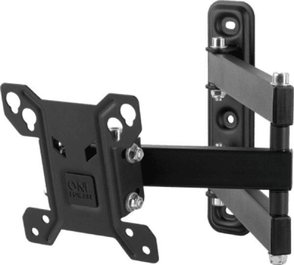 One For All WM 2151. Suitable for: TV, Maximum weight capacity: 30 kg, Minimum screen size compatibility: 33 cm (13"), Maximum screen size compatibility: 68.6 cm (27"), Minimum VESA mount: 75 x 75 mm, Maximum VESA mount: 100 x 100 mm. Tilt angle range: 0 - 15°, Swivel angle range: 0 - 180°, Distance to the wall (min): 39.3 cm, Distance to the wall (max): 4.9 cm. Product colour: Black