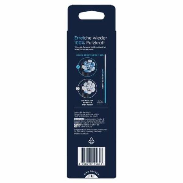 FARBWECHSELNDE BORSTEN: Die Oral-B Aufsteckbürsten verfügen über farbwechselnde Borsten, die signalisieren, wenn der Bürstenkopf gewechselt werden sollte, für maximale Reinigungsleistung
