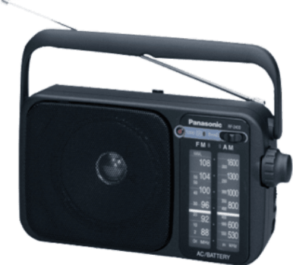 Panasonic RF-2400D. Radio type: Portable, Tuner type: Analog, Supported radio bands: AM, FM. Driver unit: 1 cm. Headphone connectivity: 3.5 mm. Product colour: Black, Volume control: Rotary, Antenna type: External. Compatible battery sizes: AA