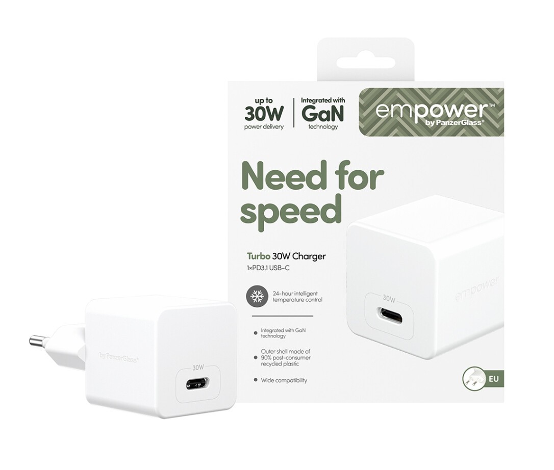 PanzerGlass empower by ® Turbo 30W Ladegarät Single USB-C | EU Anschluss | Silber Weiss, Drinnen, AC, Weiß