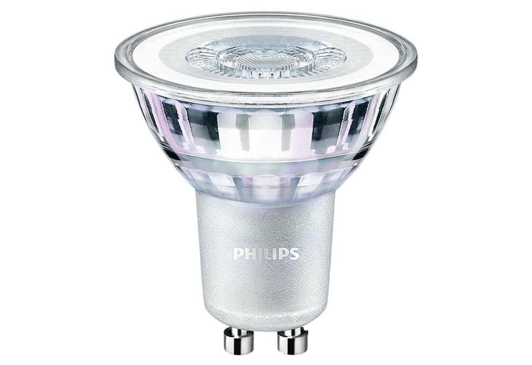 Philips CorePro LEDspot. Bulb power: 4.6 W, Equivalent bulb power: 50 W, Fitting/cap type: GU10. Energy efficiency class: A+. Luminous flux: 370 lm, Bulb lifetime: 15000 h, Light colour: White, Colour temperature: 3000 K, Beam angle: 36°, Color Rendering Index (CRI): 80, Power factor: 0.5