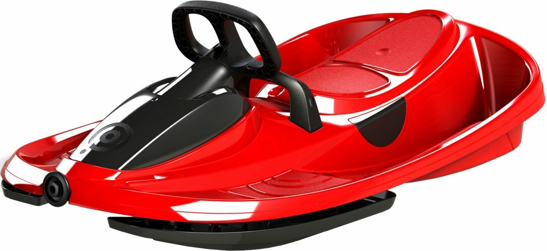 ''Stratos Lenkbob: Belastbar bis 120kg Dimensions | Abmessungen 98 x 56 x 23 (30 mit montiertem Lenkrad) cmzwei Jahre Forschung waren erforderlich für die Entwicklung des derzeit innovativsten Schlittens auf dem Markt Durch das Differentialsystem, welches es ermöglicht die Ski in verschiedene Winkel zu drehen, kann der Schlitten auch bei hoher Geschwindigkeit in der Kurve gehalten werden automatischer Seileinzug, Zweisitzer keine Metallteile, somit auch keine scharfen Metallkanten. Keine Korrosion, keine Montage erforderlich alles mit Klickmechanismus, mattes und glänzendes Design ''